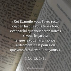 Frères, je vous rappelle la Bonne Nouvelle que je vous ai annoncée ; cet Évangile, vous l’avez reçu ; c’est en lui que vous tenez bon,