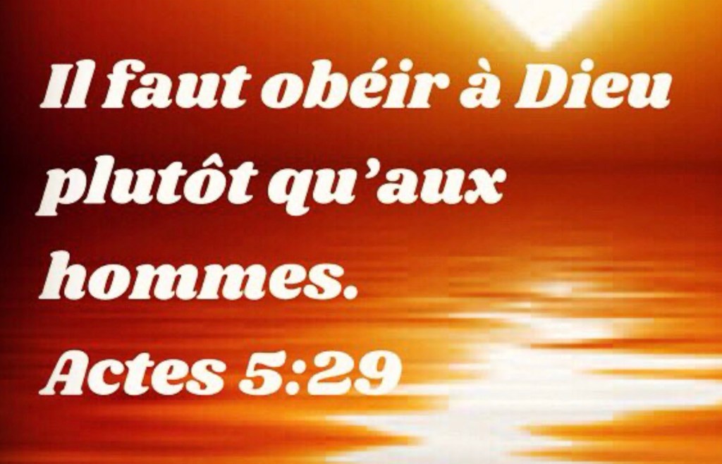 En réponse, Pierre et les Apôtres déclarèrent : « Il faut obéir à Dieu plutôt qu’aux hommes.