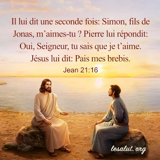 Il lui dit une deuxième fois : « Simon, fils de Jean, m’aimes-tu vraiment ? » Il lui répond : « Oui, Seigneur ! Toi, tu le sais : je t’aime. » Jésus lui dit : « Sois le pasteur de mes brebis. »