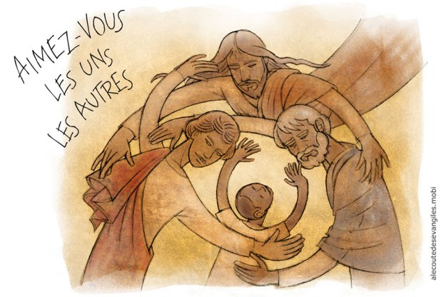 Je vous donne un commandement nouveau : c’est de vous aimer les uns les autres. Comme je vous ai aimés, vous aussi aimez-vous les uns les autres.