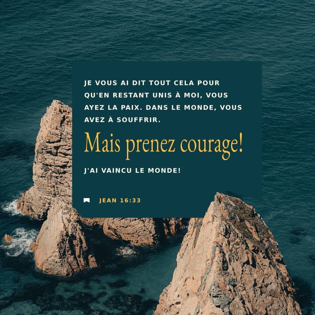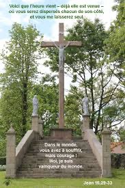 Je vous ai parlé ainsi, afin qu’en moi vous ayez la paix. Dans le monde, vous avez à souffrir, mais courage ! Moi, je suis vainqueur du monde. »