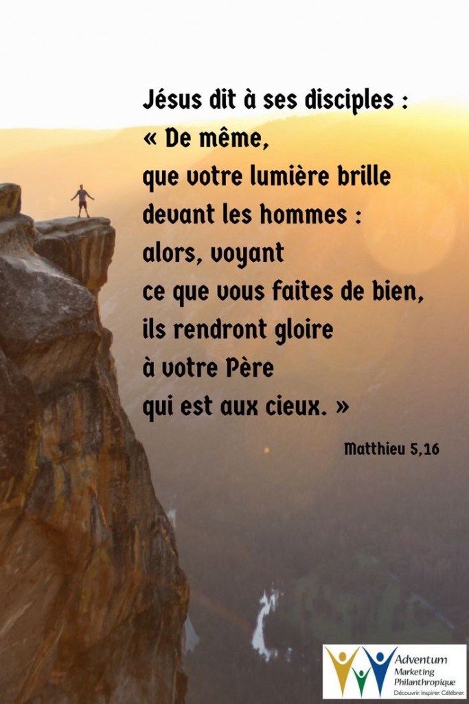 De même, que votre lumière brille devant les hommes : alors, voyant ce que vous faites de bien, ils rendront gloire à votre Père qui est aux cieux. »
