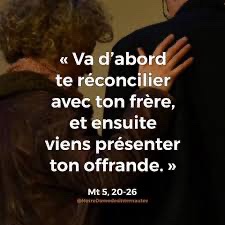 laisse ton offrande, là, devant l’autel, va d’abord te réconcilier avec ton frère, et ensuite viens présenter ton offrande.