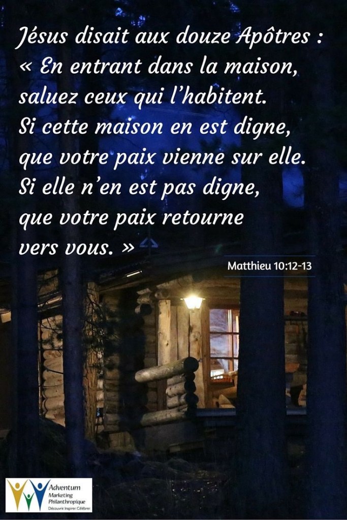Si cette maison en est digne, que votre paix vienne sur elle. Si elle n’en est pas digne, que votre paix retourne vers vous. »