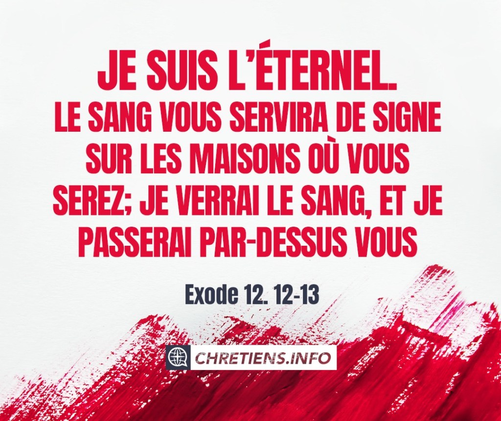 Le sang sera pour vous un signe, sur les maisons où vous serez. Je verrai le sang, et je passerai : vous ne serez pas atteints par le fléau dont je frapperai le pays d’Égypte.