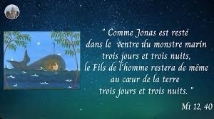 En effet, comme Jonas est resté dans le ventre du monstre marin trois jours et trois nuits, le Fils de l’homme restera de même au cœur de la terre trois jours et trois nuits.