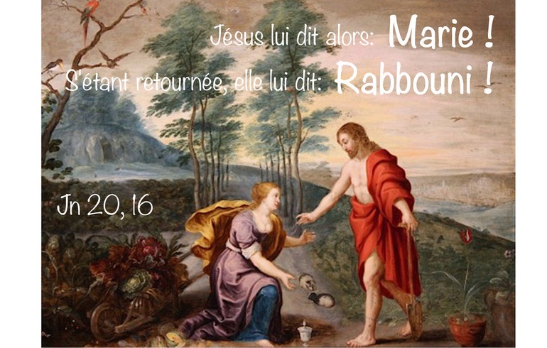 Jésus lui dit alors : « Marie ! » S’étant retournée, elle lui dit en hébreu : « Rabbouni ! », c’est-à-dire : Maître.