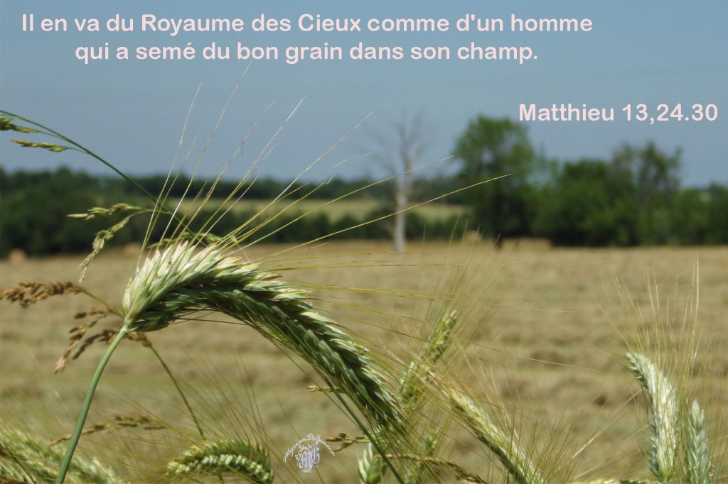 Laissez-les pousser ensemble jusqu’à la moisson ; et, au temps de la moisson, je dirai aux moissonneurs : Enlevez d’abord l’ivraie, liez-la en bottes pour la brûler ; quant au blé, ramassez-le pour le rentrer dans mon grenier.” »