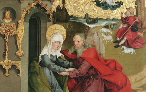 Sous la porte dorée, c’est-à-dire dans la salle souterraine qui était sous cette porte, je vis Joachim et Anne entourés d’une multitude d’anges qui brillaient d’une lumière céleste ; eux-mêmes resplendissaient, et ils étaient purs comme des esprits, se trouvant dans un état surnaturel où aucun couple humain n’avait été avant eux. »