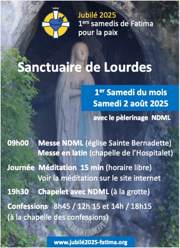 Aussi est-il particulièrement important de faire tout ce que nous pouvons pour faire connaître cette dévotion autour de nous et d’agir pour obtenir son approbation par le Saint-Siège. Pour cela, le centenaire de la demande de Notre-Dame est une occasion unique qu’il ne faut surtout pas laisser passer. C’est la raison pour laquelle, au début de cette année, un groupe de fidèles a lancé le Jubilé 2025 des 1ers samedis de Fatima. (https://jubile2025-fatima.org/) Chaque premier samedi, des cérémonies ont été organisées et le seront jusqu’à la fin de l’année (voir sur le site le compte-rendu de ces journées). De plus, une démarche est actuellement entreprise auprès du Saint-Père pour qu’il approuve et recommande officiellement cette dévotion, le 10 décembre prochain, ou qu’au moins il nomme un légat comme il en a nommé un pour les jubilés de Paray-le-Monial et de Sainte Anne d’Auray, pour présider à cette cérémonie.