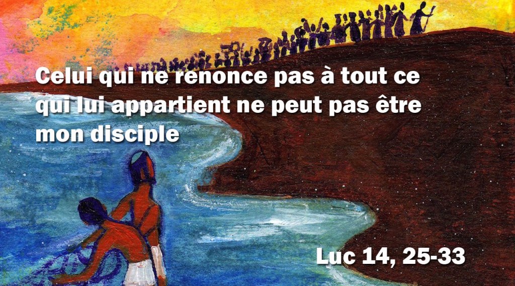 Ainsi donc, celui d’entre vous qui ne renonce pas à tout ce qui lui appartient ne peut pas être mon disciple. »