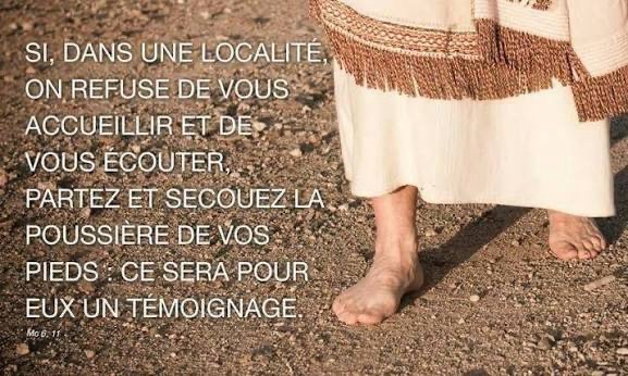 Et si les gens ne vous accueillent pas, sortez de la ville et secouez la poussière de vos pieds : ce sera un témoignage contre eux. ».