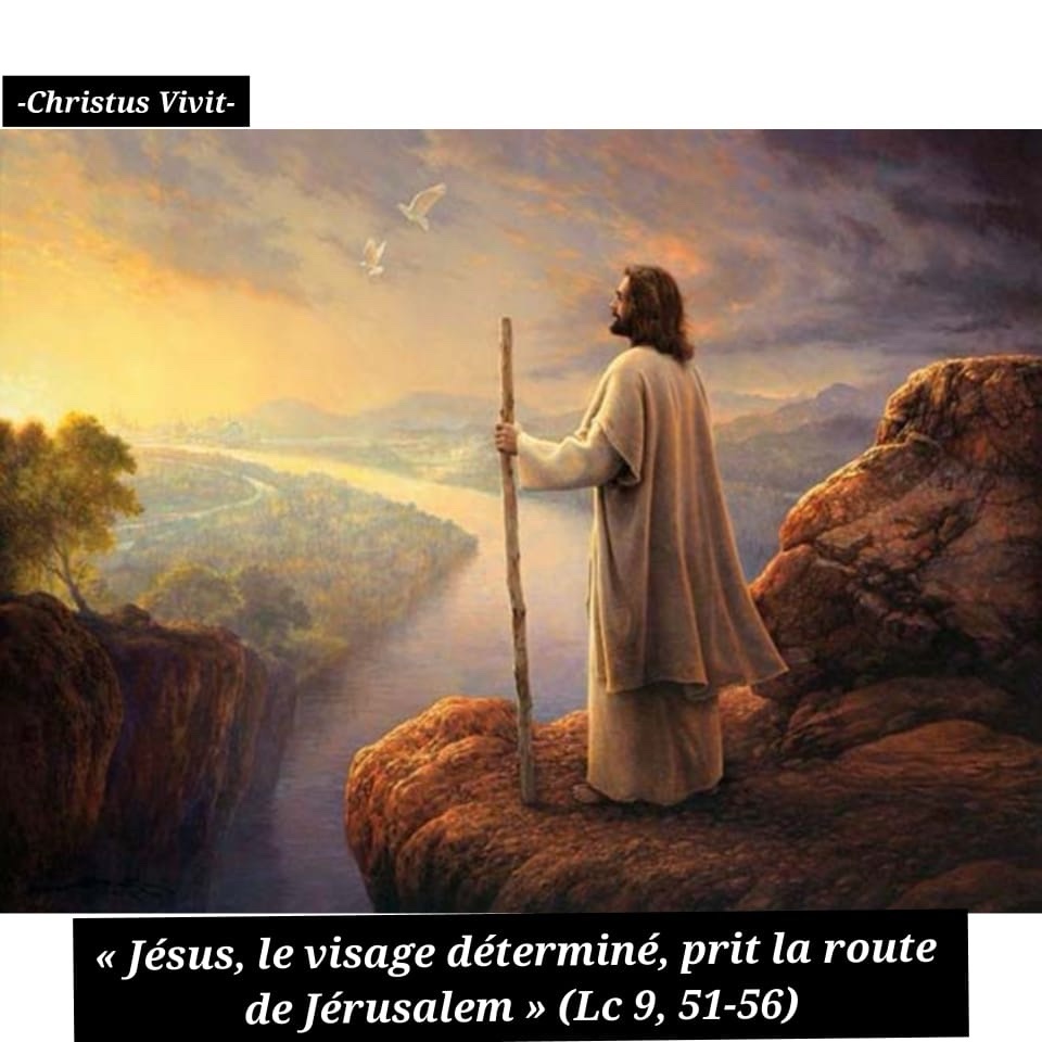Comme s’accomplissait le temps où il allait être enlevé au ciel, Jésus, le visage déterminé, prit la route de Jérusalem.