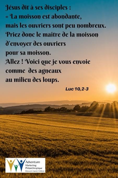 Il leur dit : « La moisson est abondante, mais les ouvriers sont peu nombreux. Priez donc le maître de la moisson d’envoyer des ouvriers pour sa moisson.