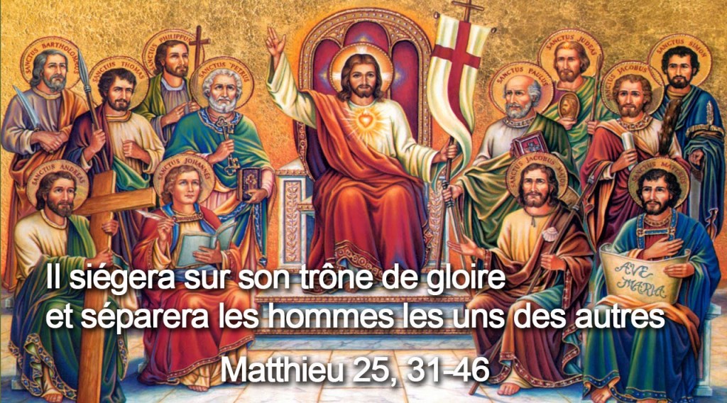 En ce temps-là, Jésus disait à ses disciples : « Quand le Fils de l’homme viendra dans sa gloire, et tous les anges avec lui, alors il siégera sur son trône de gloire.