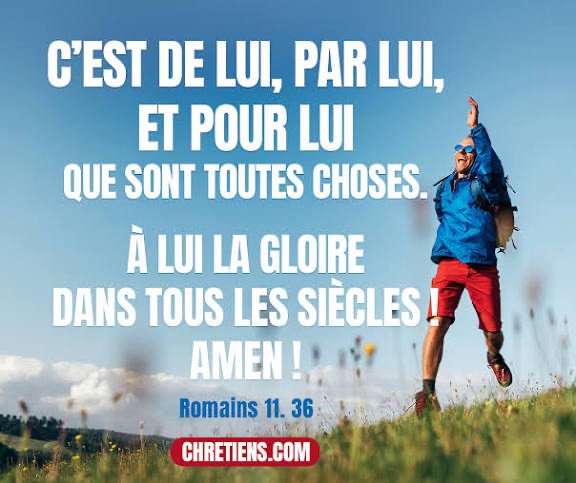 Car tout est de lui, et par lui, et pour lui. À lui la gloire pour l’éternité ! Amen.