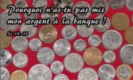 Le dernier vint dire : “Seigneur, voici la somme que tu m’avais remise ; je l’ai gardée enveloppée dans un linge.