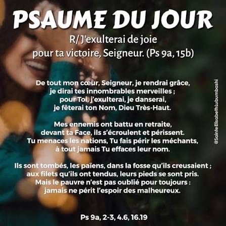 R/ J’exulterai de joie pour ta victoire, Seigneur. (Ps 9a, 15b)