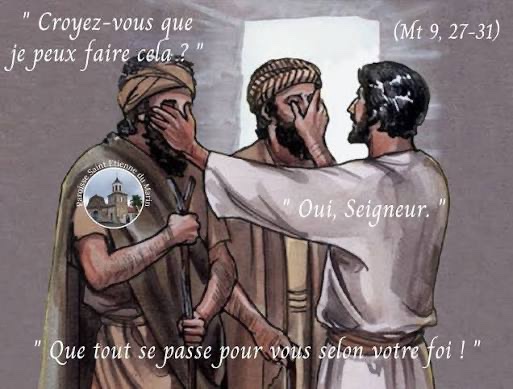 Quand il fut entré dans la maison, les aveugles s’approchèrent de lui, et Jésus leur dit : « Croyez-vous que je peux faire cela ? » Ils lui répondirent : « Oui, Seigneur. »
