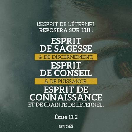 Sur lui reposera l’esprit du Seigneur : esprit de sagesse et de discernement, esprit de conseil et de force, esprit de connaissance et de crainte du Seigneur