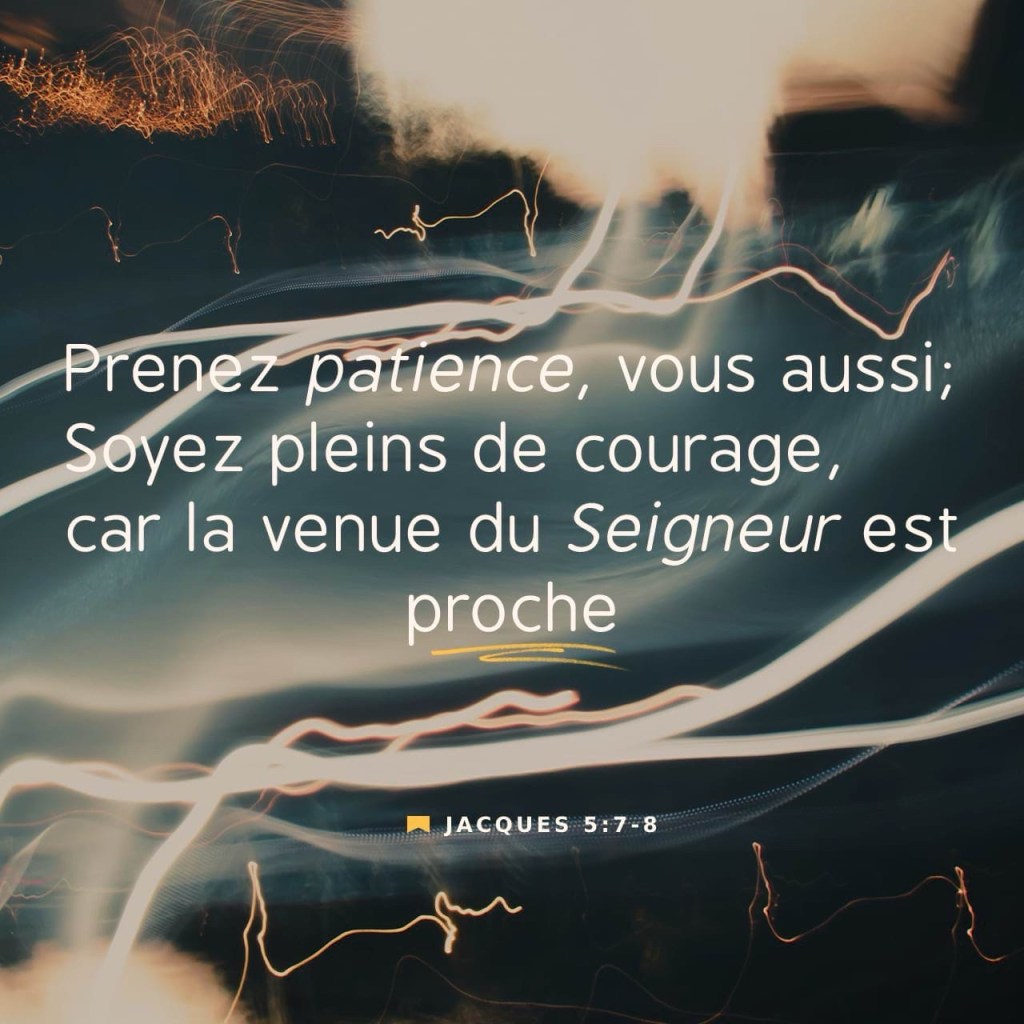 Prenez patience, vous aussi, et tenez ferme car la venue du Seigneur est proche.