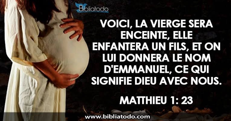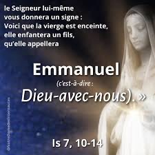 ‘Voici que la Vierge concevra, et elle enfantera un fils ; on lui donnera le nom d’Emmanuel’, qui se traduit : « Dieu-avec-nous »