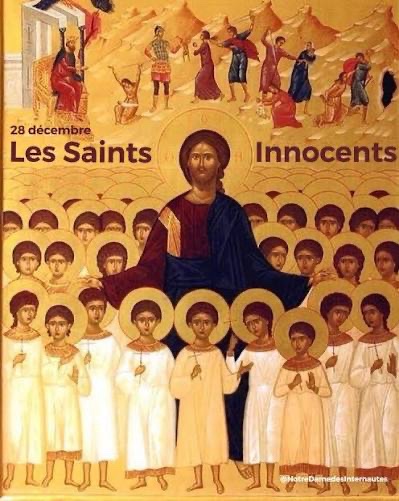 St Jean, dans son Apocalypse, nous montre les saints Innocents entourant le trône de l’Agneau parce qu’ils sont purs, et Le suivant partout où Il va. « Demanderez-vous, dit saint Bernard, pour quels mérites ces enfants ont été couronnés de la main de Dieu ? Demandez plutôt à Hérode pour quels crimes ils ont été cruellement massacrés. La bonté du Sauveur sera-t-elle vaincue par la barbarie d’Hérode ? Ce roi impie a pu mettre à mort des enfants innocents, et Jésus-Christ ne pourrait pas donner la vie éternelle à ceux qui ne sont morts qu’à cause de Lui ? Les yeux de l’homme ou de l’ange ne découvrent aucun mérite dans ces tendres créatures ; mais la grâce divine s’est plu à les enrichir, aussi l’Église a-t-elle établi leur fête au plus tard dès le second siècle. »