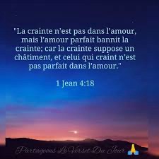 Il n’y a pas de crainte dans l’amour, l’amour parfait bannit la crainte ; car la crainte implique un châtiment, et celui qui reste dans la crainte n’a pas atteint la perfection de l’amour.