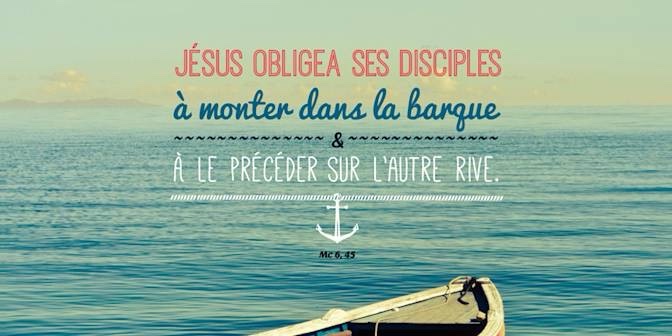Aussitôt après avoir nourri les cinq mille hommes, Jésus obligea ses disciples à monter dans la barque et à le précéder sur l’autre rive, vers Bethsaïde, pendant que lui-même renvoyait la foule.