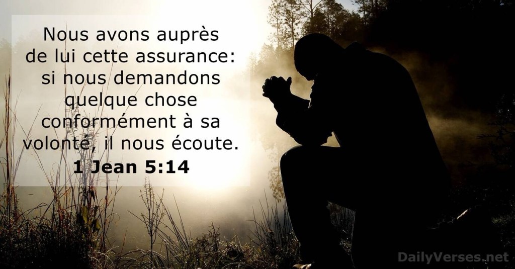 Bien-aimés, voici l’assurance que nous avons auprès de Dieu : si nous faisons une demande selon sa volonté, il nous écoute.