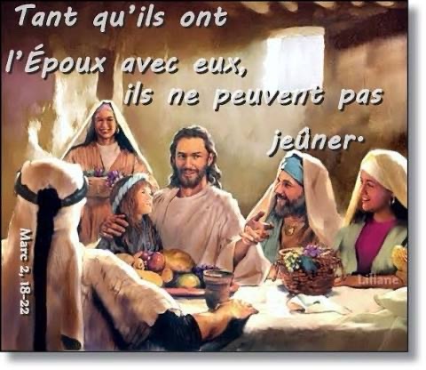 Jésus leur dit : « Les invités de la noce pourraient-ils jeûner, pendant que l’Époux est avec eux ? Tant qu’ils ont l’Époux avec eux, ils ne peuvent pas jeûner.