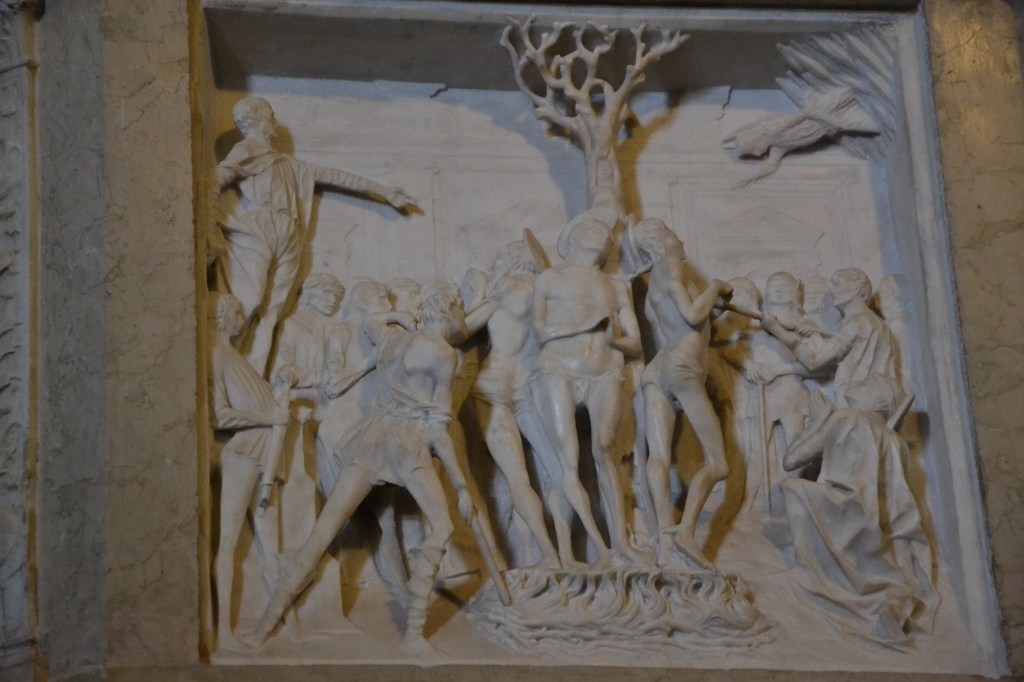 Quand ils furent reconnus comme chrétiens, ils furent arrêtés et, refusant toute proposition d’idolâtrie, condamnés : les trois hommes furent décapités et Marthe périt noyée.