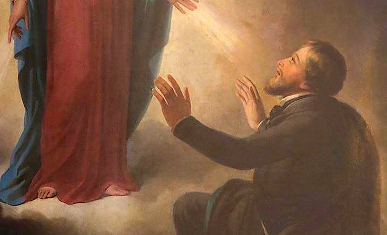 Le 20 janvier 1842, il accompagna M. de Bussière dans l’église de Saint-André delle Fratte à Rome et la Vierge Marie lui apparut, les mains ouvertes et étendues, lui faisant signe de s’agenouiller. Il écrira plus tard :