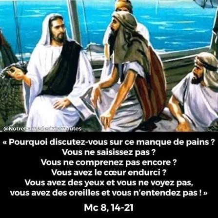 Jésus s’en rend compte et leur dit : « Pourquoi discutez-vous sur ce manque de pains ? Vous ne saisissez pas ?