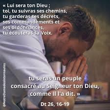Aujourd’hui tu as obtenu du Seigneur cette déclaration : lui sera ton Dieu ; toi, tu suivras ses chemins, tu garderas ses décrets, ses commandements et ses ordonnances, tu écouteras sa voix.