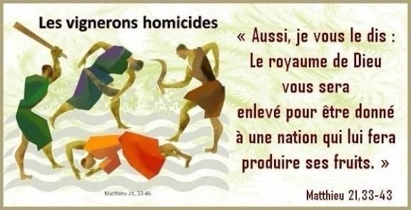 En ce temps-là,  Jésus disait aux grands prêtres et aux anciens du peuple : « Écoutez cette parabole : Un homme était propriétaire d’un domaine ; il planta une vigne, l’entoura d’une clôture, y creusa un pressoir et bâtit une tour de garde. Puis il loua cette vigne à des vignerons, et partit en voyage.