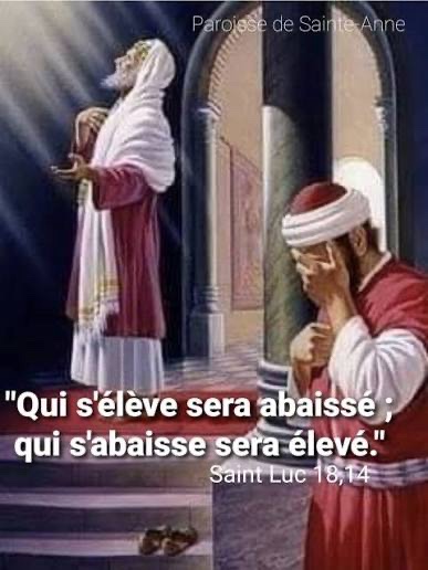 Je vous le déclare : quand ce dernier redescendit dans sa maison, c’est lui qui était devenu un homme juste, plutôt que l’autre. Qui s’élève sera abaissé ; qui s’abaisse sera élevé. »