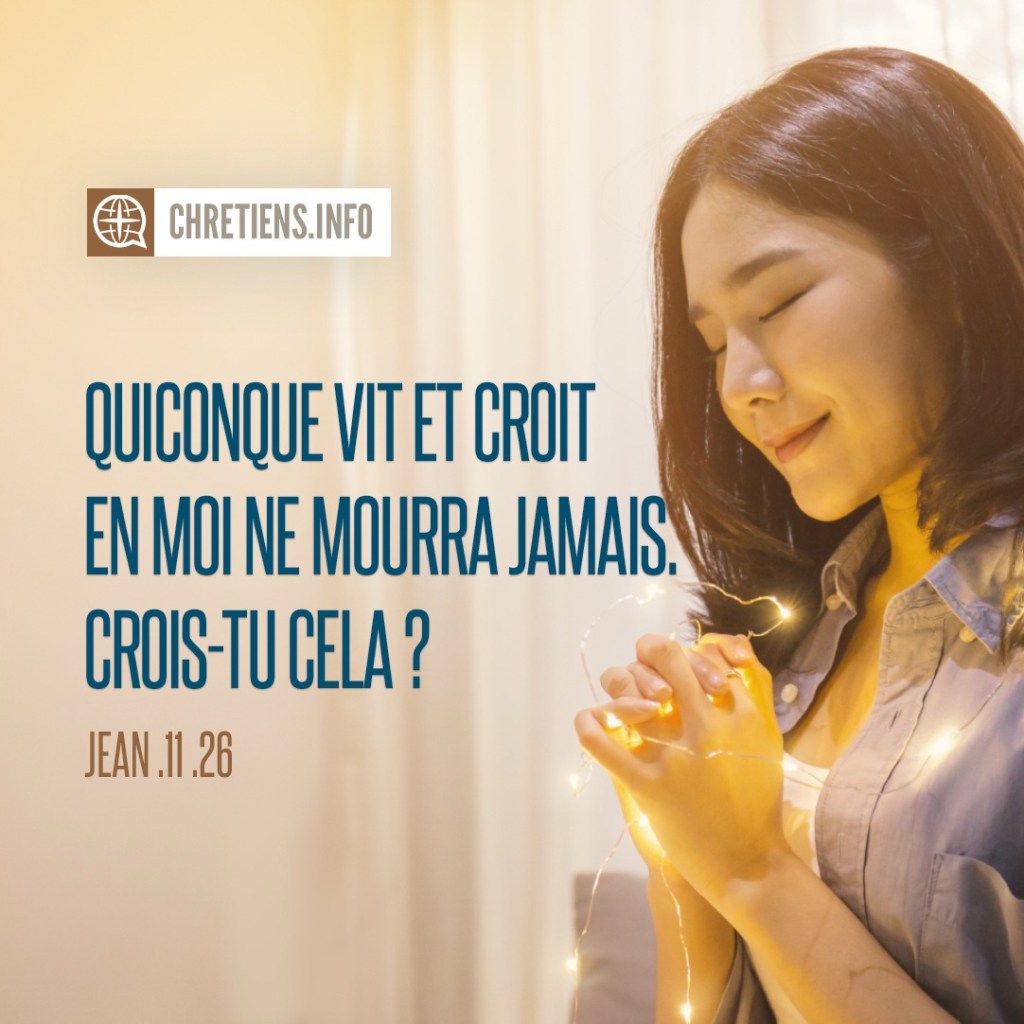 quiconque vit et croit en moi ne mourra jamais. Crois-tu cela ? »