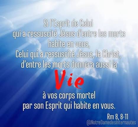Et si l’Esprit de celui qui a ressuscité Jésus d’entre les morts habite en vous, celui qui a ressuscité Jésus, le Christ, d’entre les morts donnera aussi la vie à vos corps mortels par son Esprit qui habite en vous.
