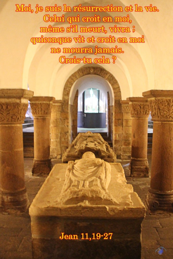 Jésus lui dit : « Moi, je suis la résurrection et la vie. Celui qui croit en moi, même s’il meurt, vivra ;