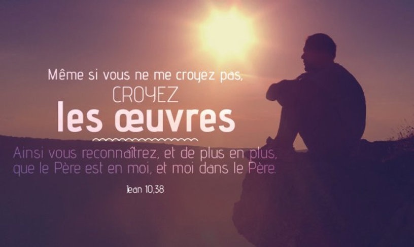 Mais si je les fais, même si vous ne me croyez pas, croyez les œuvres. Ainsi vous reconnaîtrez, et de plus en plus, que le Père est en moi, et moi dans le Père. »