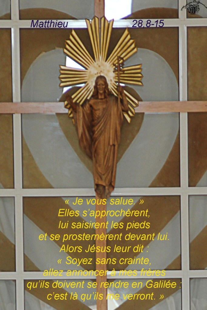 Alors Jésus leur dit : « Soyez sans crainte, allez annoncer à mes frères qu’ils doivent se rendre en Galilée : c’est là qu’ils me verront. »
