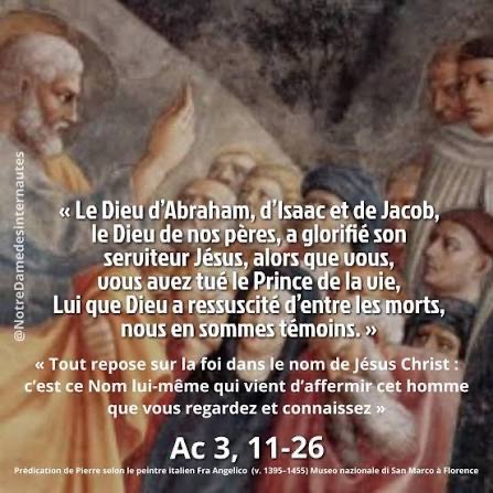 Voyant cela, Pierre interpella le peuple : « Hommes d’Israël, pourquoi vous étonner ? Pourquoi fixer les yeux sur nous, comme si c’était en vertu de notre puissance personnelle ou de notre piété que nous lui avons donné de marcher ?