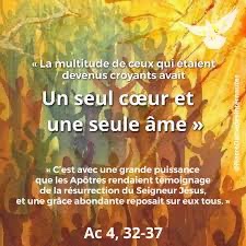 La multitude de ceux qui étaient devenus croyants avait un seul cœur et une seule âme ; et personne ne disait que ses biens lui appartenaient en propre, mais ils avaient tout en commun.