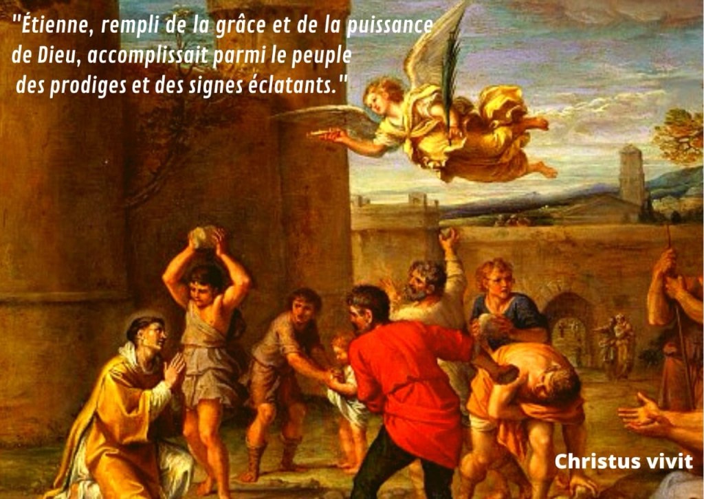En ces jours-là, Étienne, rempli de la grâce et de la puissance de Dieu, accomplissait parmi le peuple des prodiges et des signes éclatants.
