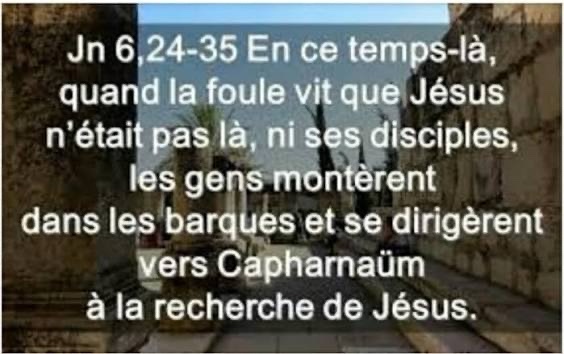 Quand la foule vit que Jésus n’était pas là, ni ses disciples, les gens montèrent dans les barques et se dirigèrent vers Capharnaüm à la recherche de Jésus.