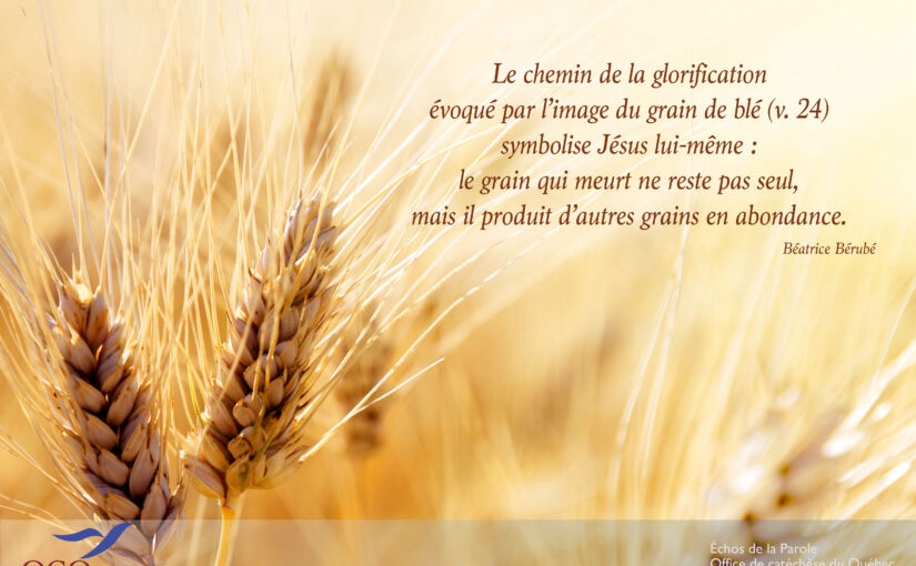 “Nous voudrions voir Jésus.” En lisant l’évangile, nous voyons que le Christ ne répond pas directement à cette demande. Il fait beaucoup mieux. Il les entraîne vers le mystère de son “Heure”. Nous nous rappelons qu’aux noces de Cana, il avait dit que son heure n’était pas encore arrivée. Aujourd’hui, il annonce : “Elle est venue l’heure où le Fils de l’homme doit être glorifié.” Son heure, c’est celle de la croix et de la résurrection. Sa gloire, c’est son mystère de Fils de Dieu qui sera révélé. Il est ce grain de blé qui meurt en terre pour donner beaucoup de fruit. Il accepte d’être élevé de terre sur la croix par les hommes pour les délivrer du péché et de la mort. Il veut les emporter tous dans sa résurrection. Il veut nous faire partager sa gloire de Fils de Dieu.