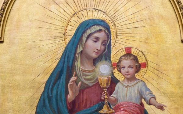 Je vous salue, Marie pleine de grâce ; le Seigneur est avec vous. Vous êtes bénie entre toutes les femmes et Jésus, le fruit de vos entrailles, est béni. Sainte Marie, Mère de Dieu, priez pour nous pauvres pécheurs, maintenant et à l’heure de notre mort.