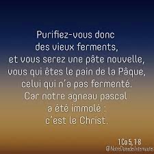 Purifiez-vous donc des vieux ferments, et vous serez une pâte nouvelle, vous qui êtes le pain de la Pâque, celui qui n’a pas fermenté. Car notre agneau pascal a été immolé : c’est le Christ.