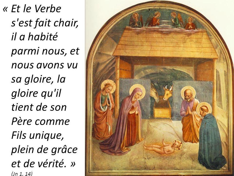 Et le Verbe s’est fait chair, il a habité parmi nous, et nous avons vu sa gloire, la gloire qu’il tient de son Père comme Fils unique, plein de grâce et de vérité.